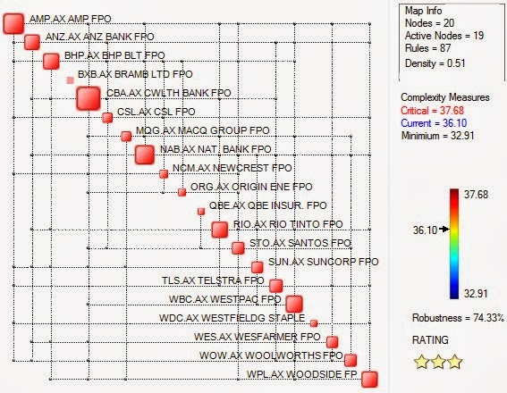 Similar analysis may be run free of charge at Assetdyne’s website. As the analyses are performed on daily Close value of the corresponding stocks, the above indicated values of complexity and resilience may also change on a daily basis.