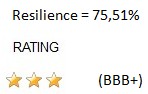 The Resilience Rating of 72% is, on the scale of conventional ratings, equivalent to BBB-, one step from class BB +, the first of speculative ratings.