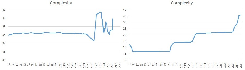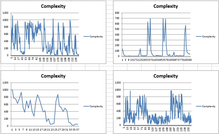 Complexity evolution of various financial products over periods of tens to hundreds of days. The variety of behaviors is immense – nonlinear dynamics in its purest form.