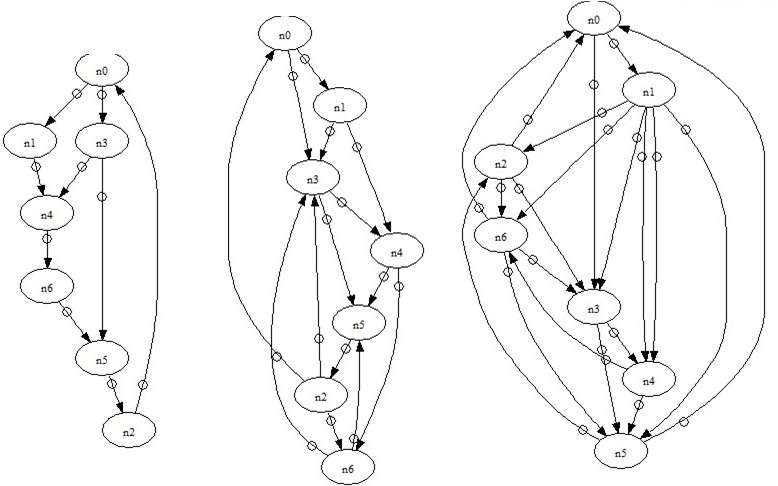 Complexity, however, like most things in life, is not a static or “permanent” property. As all things change constantly, the same may be said of complexity. Because nothing stays the same (remember, you cannot step twice into the same river) complexity can be studied and assessed only in a dynamic context. In the very rare occasions in which the complexity of a system remains constant we’re actually talking of how complicated that something is, not how complex. Imagine a watch movement – its properties don’t change over time, the system is essentially a one-degree-of-freedom system that is, for all practical purposes, deterministic and unable to deliver surprises. Systems which are time-invariant and deterministic can be described by structure alone – by structure me mean the topology of the dependencies of the system’s parameters as illustrated in the simple example below. The three cases below correspond to a 7-parameter system in which the number of dependencies increases from left while the number of nodes (parameters) remains unchanged.