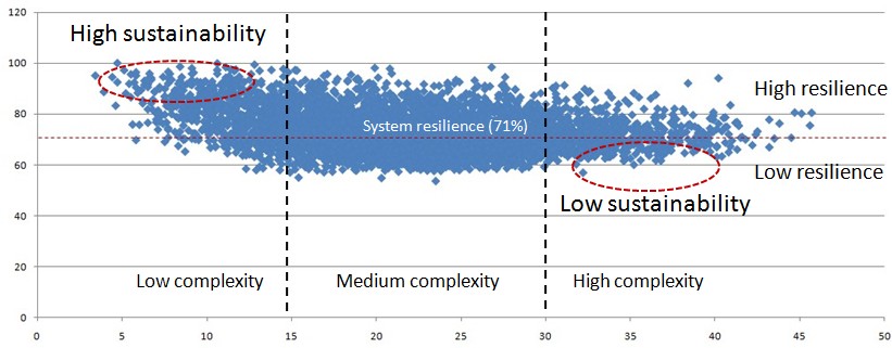 Figure 1 Low and high complexity portfolios with similar resilience.