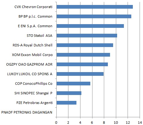 In other words, companies such as Chevron, BP and ENI, have a larger footprint on the Oil & Gas sector than, say, Sinopec or Conoco Phillips. In other words, Chevron, BP and EN are responsible for over 35% of the resilience of the Oil & Gas sector. Again, by footprint we mean resilience not market capitalization or revenue.
