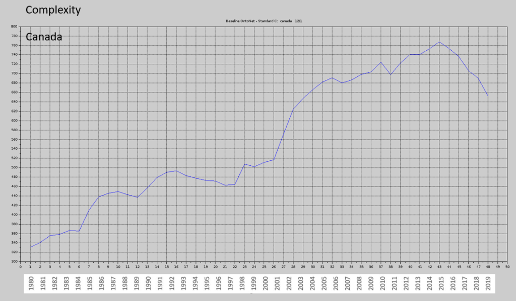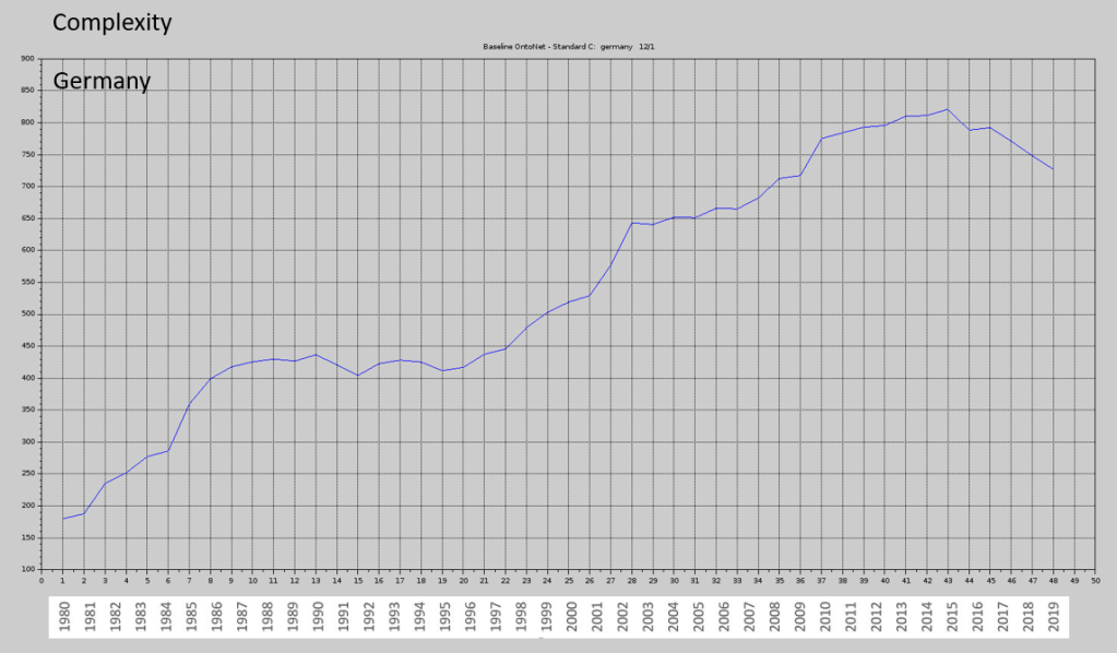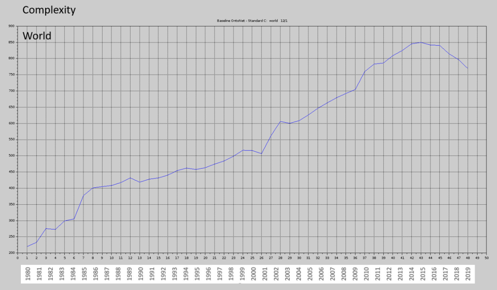 The case of China is surprising, to say the least. The evolution of complexity of China is almost linear, quite smooth, seemingly independent of other countries, as if China were on another planet. What does this say of China? China, unlike many countries, appears to have a roadmap, which it follows consistently. China has leadership which focuses on growth rather than on destruction. It is not difficult to conclude what the future reserves.