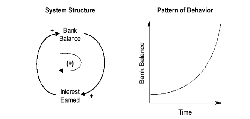 Positive feedback loops contain the dynamics for change in a system, growth and evolution.