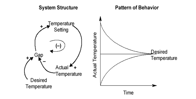 Negative feedback loops represent control and stability, the establishment of equilibrium and self-maintenance.