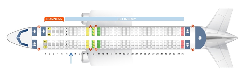 Position in aircraft: Seat 6A (location indicated in scheme below)