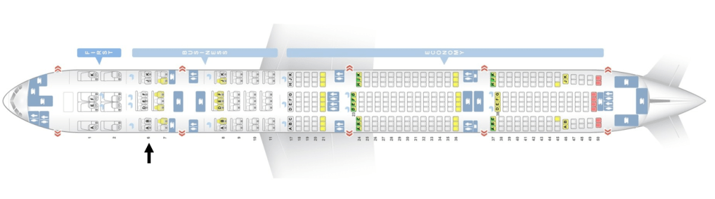 Position in aircraft: Seat 7A (location indicated in scheme below)