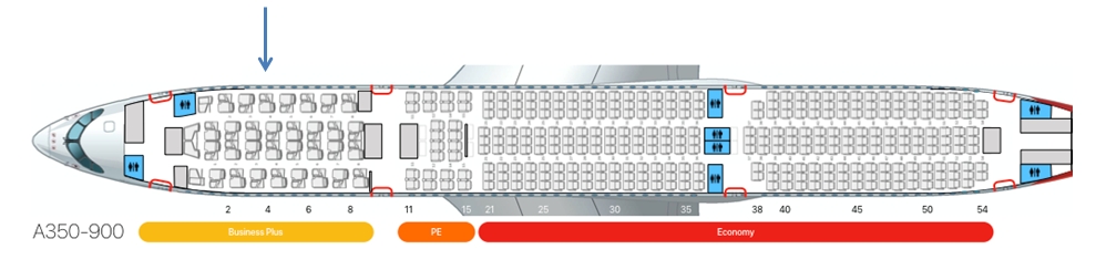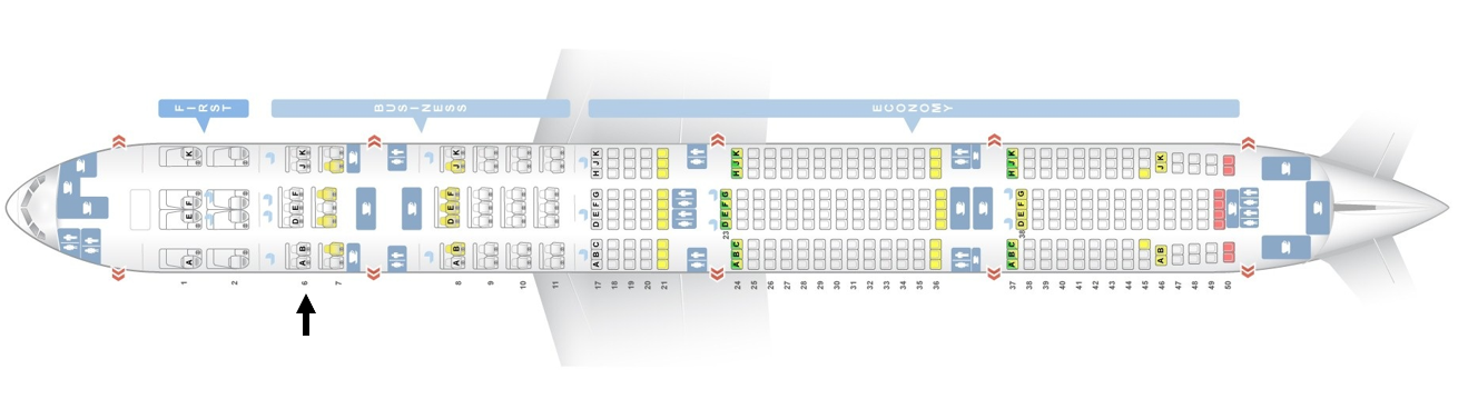 Position in aircraft: Seat 6A (location indicated in scheme below)