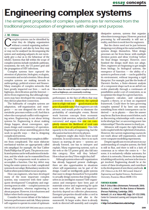 capacity to absorb both expected and unexpected random variations of operational conditions, without failing or compromising their function. This capacity of resilience, main characteristic of robust systems, is reflected in the fact that the system is no longer optimal, a property that is linked to a single and precisely defined operational condition, but results acceptable (fit) in a wide range of conditions. In fact, contrary to popular belief, robustness and optimality are mutually exclusive. Complex systems are driven by so many interacting variables, and are designed to operate over such wide ranges of conditions, that their design must favor robustness, not optimality. In other words, robustness is equivalent to an acceptable compromise, while optimality is synonymous to excessive specialization. An optimal system is no longer such as soon as a single variable changes – something quite possible in a world of ubiquitous uncertainty.