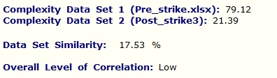 OntoTest measures the degree of similarity of two data sets – in this case pre and post strike data sets are compared. It is found that the degree of similarity (correlation) is low, around 18%. This means that: