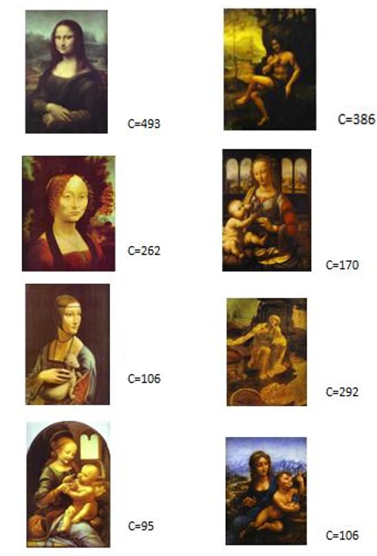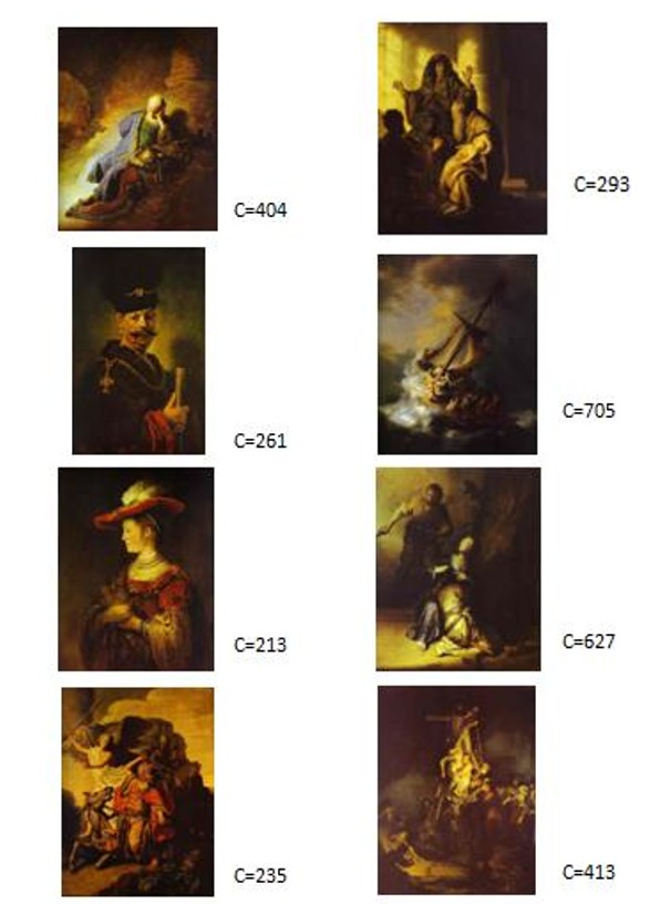 We have measured the complexity of paintings by Leonardo da Vinci and Rembrandt. The results are reported below without further comments.