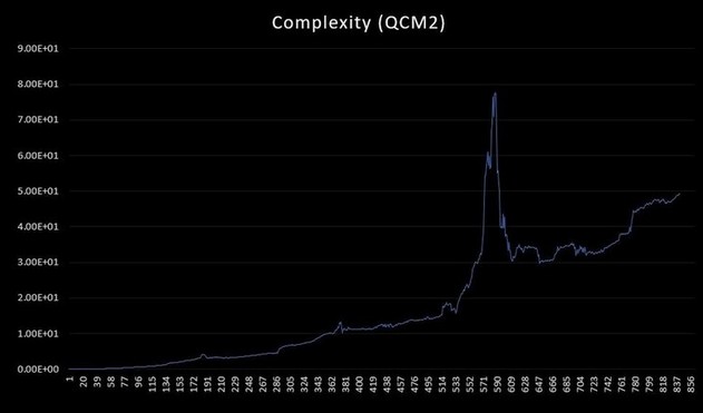 An example of how the QCM2 better captures anomalies is illustrated below. Conventional QCM indicates a drop in complexity, hinting a potential anomaly. QCM2, on the other hand, shows a much more pronounced signal.