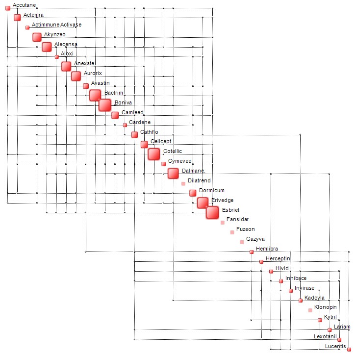 Below, examples of QCM-generated pharma sales maps, show interdependencies between consumption trends and indicate “hubs”.