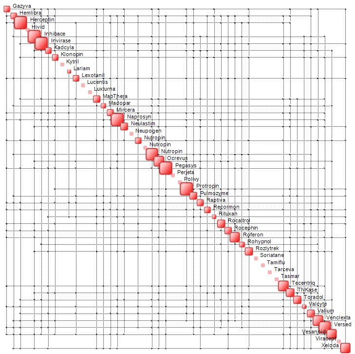 Below, examples of QCM-generated pharma sales maps, show interdependencies between consumption trends and indicate “hubs”.