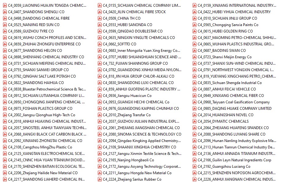 For each market sector it is easy to analyze the resilience of each corporation and to establish a Resilience Database. The example below is from a Chinese retail bank and shows an extract of companies belonging to the chemical industry.