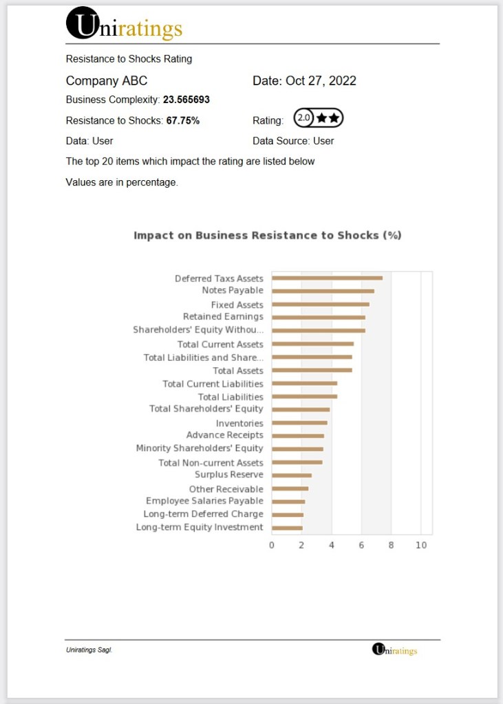 A quick glance at resilience report shows the actual rating – two stars in the above example – and a bar chart, ranking Balance Sheet entries that impact resilience the most.