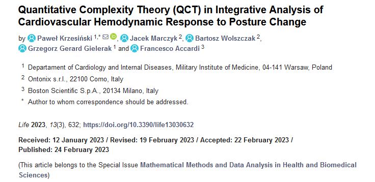 Ontonix has published an article entitled “Quantitative Complexity Theory (QCT) in Integrative Analysis of Cardiovascular Hemodynamic Response to Posture Change” in Life as part of the Special Issue Mathematical Methods and Data Analysis in Health and Biomedical Sciences and is available online: