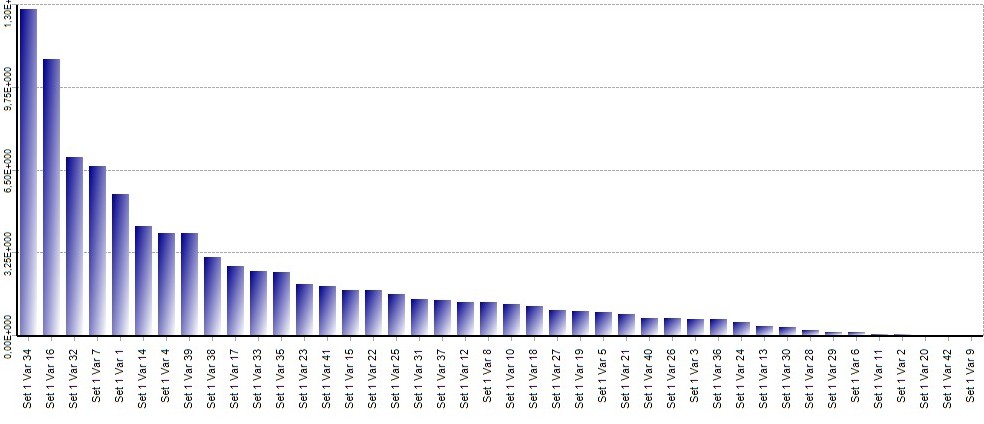 Once the profile is available, it is easy to pick, for example a subset of 5 components such that they form a minimum complexity set. These are: 9, 42, 20, 2 and 11. The following is an example of a maximum complexity 4 element set: 34, 16, 32 and 7. What minimum complexity sets accomplish is the lowest degree of coupling between elements. The inverse may be said of high complexity sets. In the case of investment portfolios it is easy to grasp the significance of this.