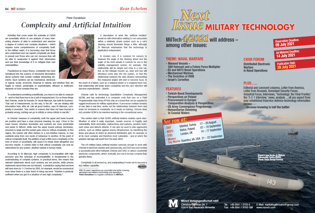 The above is the introduction to an article by Peter Donaldson in the March 2021 issue of the Military Technology journal.