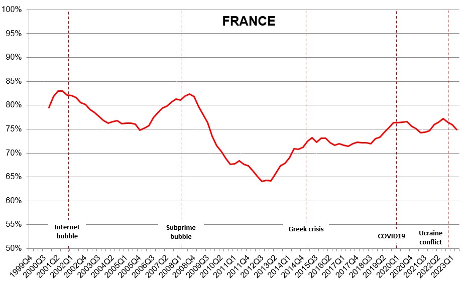 In the case of Germany, the reduction is 7% while in the case of France it is a mere 3%. France depends far more on nuclear energy that other European countries, which are forced to buy oil and gas, hence it is more immune to the cost of energy. However, as is the case of Italy, France’s resilience too is still dropping.