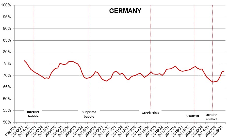 As for Germany, its resilience is becoming visibly more volatile, with pronounced swings. It just goes to show that the economy has large inertia and complex dynamics.