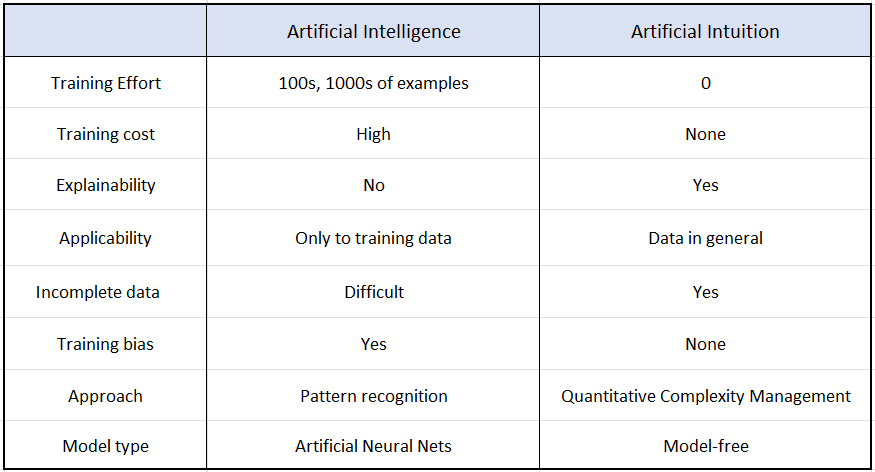We believe that a big step forward in machine decision-making will be made when Artificial Intelligence and Artificial Intuition are combined. The two happen to be “orthogonal”, to put it in mathematical terms. This makes them tremendously complementary.